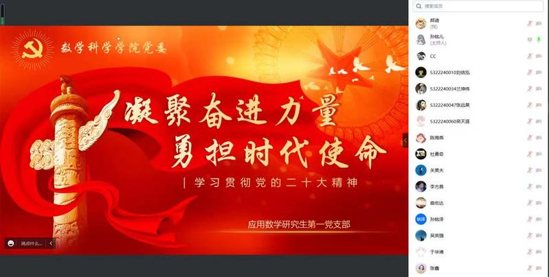 2022-12-152022年11月28日19时,太阳成集团tyc33455ccww应用数学研究生第一党支部线上召开“凝聚奋进力量,勇担时代使命”学习贯彻党的二十大精神主题党日活动。会议共25名支部党员同志参加会议,党支部书记孙铭主持会议,共同深入学习党... -
