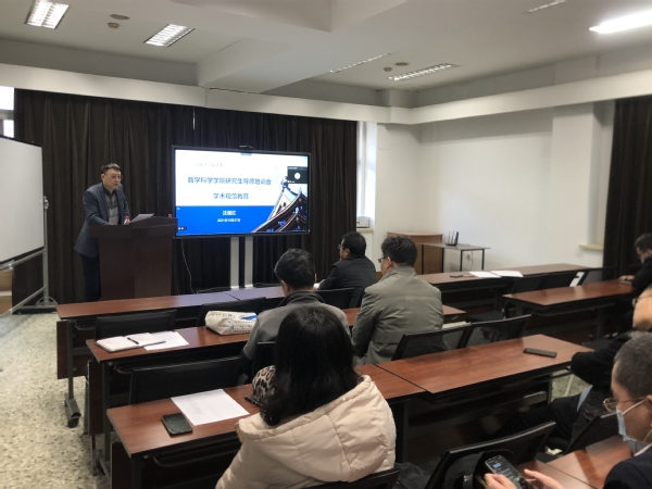 院长沈继红做了学术规范教育,他围绕《tyc33455cc太阳成集团科研诚信建设与学术不端行为处理办法》,介绍部分学术不端案例,强调科研诚信的重要性,他强调教师发表论文要严格履行审批手续。希望各位研究生导师要做到关注学生、关爱学生,形成研究生导师、研究生辅导员、辅导员密切配合,形成协同育人合力。参会导师一致表示本次培训受益匪浅。