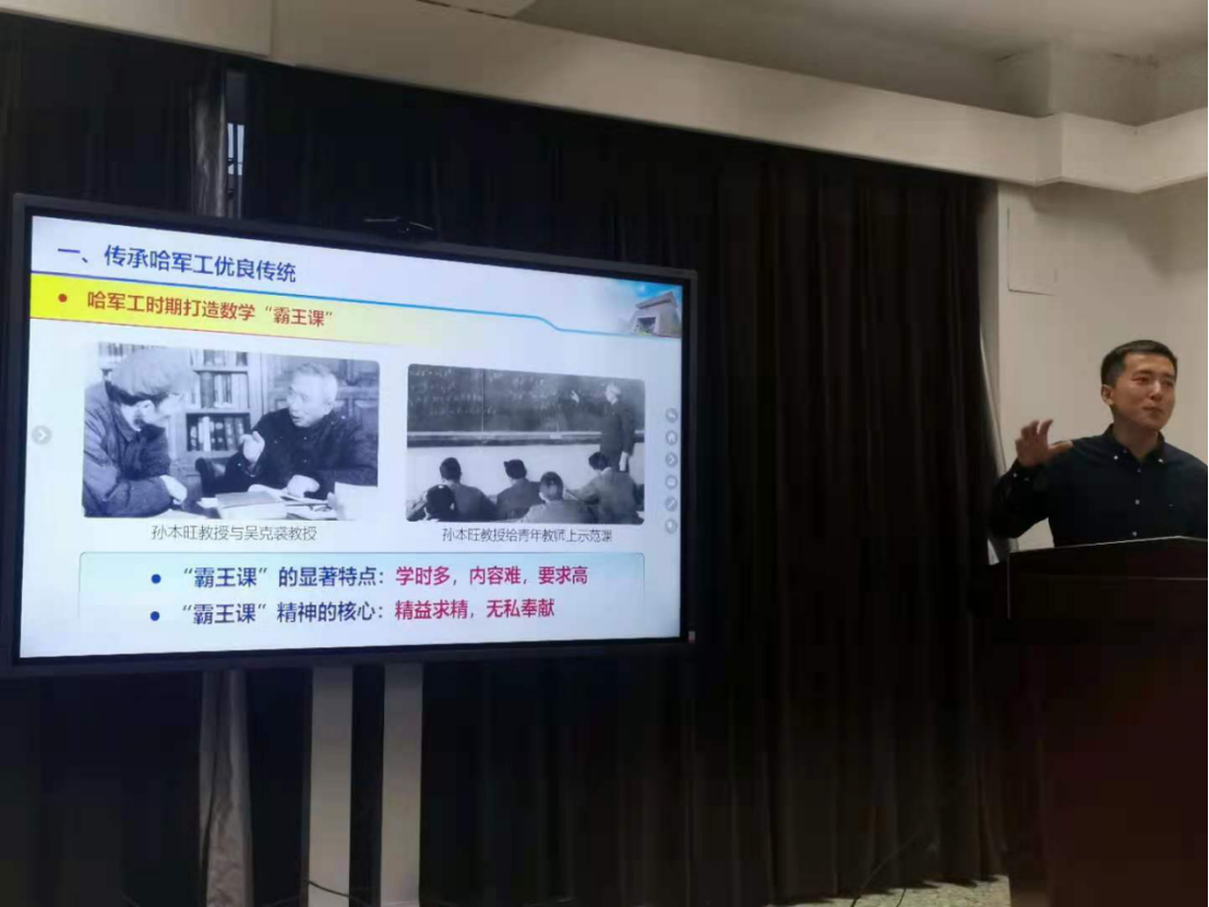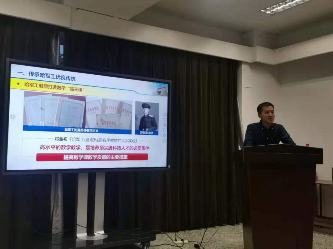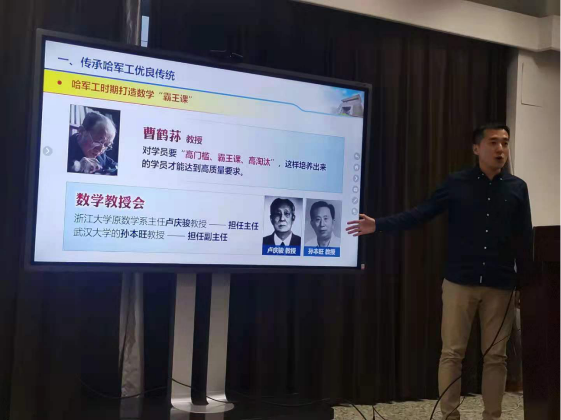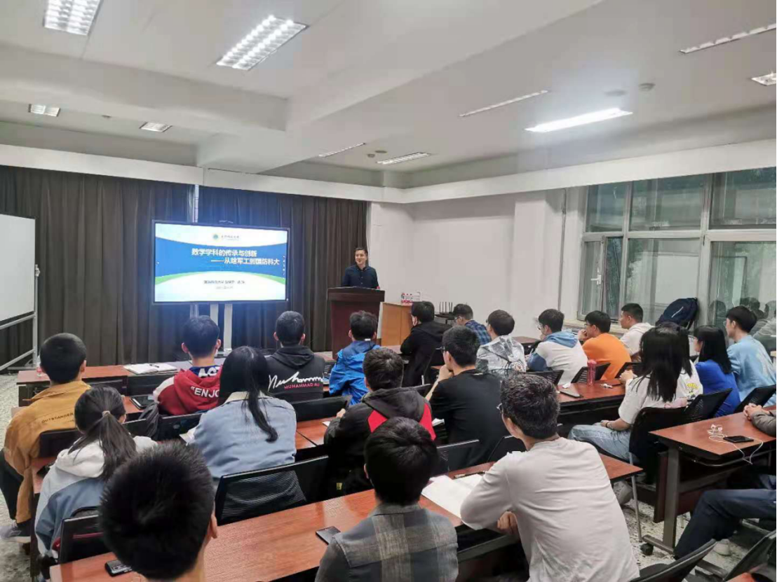 钱旭以“数学学科的传承与创新—从哈军工到国防科大”为题,从传承哈军工的优良传统、国防科大数学学科现状、服务未来国防重大需求等三方面内容为同学们进行了讲座。他重点分享了哈军工时期数学“霸王课”的故事,他讲到“哈军工时期数学‘霸王课’的显著特点是学时多、内容难、要求高,1小时的数学课学员们至少需要3个小时进行消化吸收,体现了哈军工数学人精益求精的精神核心。”接着钱旭分享了历任哈军工数学教研室主任、国防科技大学系统工程与数学系首任系主任、副校长孙本旺教授等一代代国防科大数学人艰苦创业、服务国防的感人故事,他勉励学生“要围绕我国国防重大需求,做有用、有意义的数学。”最后钱旭与学生们就“为什么学数学”、“学习数学的意义”等话题进行了交流。