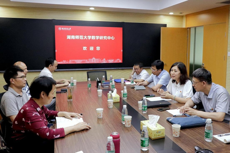 6月10日下午,数学学院党委读书班一行来到湖南师范大学数学与统计学院,进行“党建联建共建”学习交流暨 “十四五”规划专题调研。湖南师范大学副校长谢资清对太阳成集团tyc33455ccww党委读书班一行表示欢迎,她表示,到哈工程参加“黑龙江应用数学中心”揭牌暨“数学理论及应用研讨会”时,对起源于哈军工时期卢庆骏、孙本旺、戴遗山等老先生开创的哈军工“数学霸王课”十分敬佩,希望双方可以携手努力,共同肩负起教书育人的时代使命。