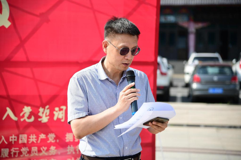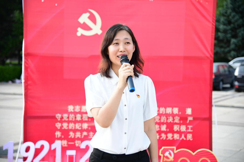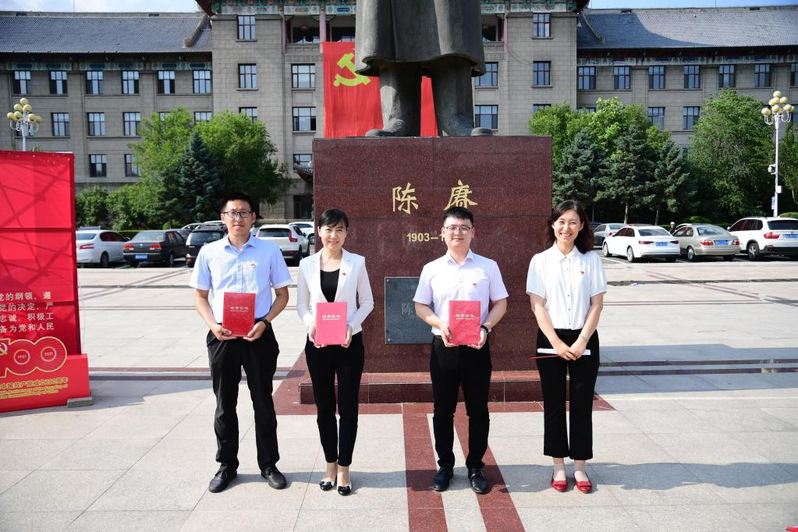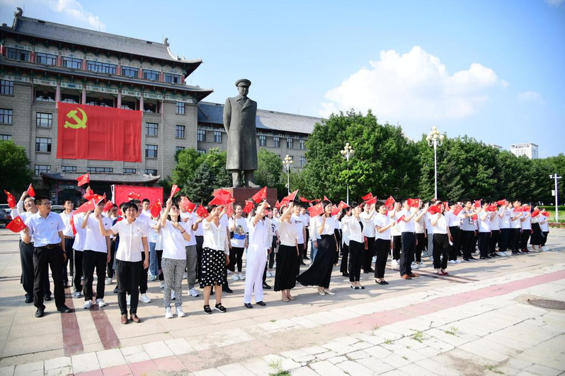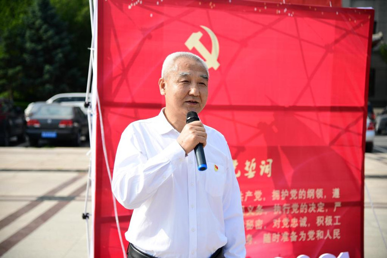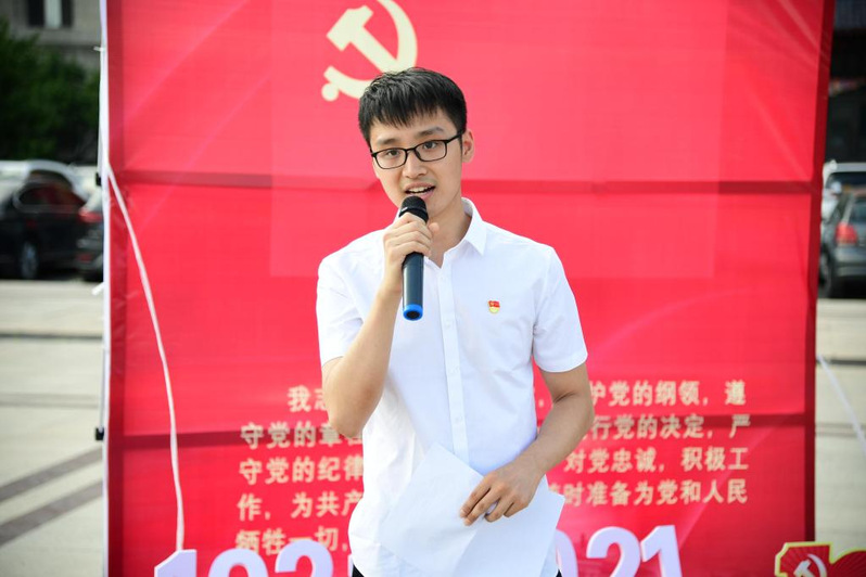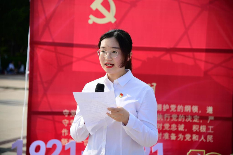 有着40年教龄、30年党龄的孙广毅教授上台领誓。他深情地说,我在高等数学等课堂上,送走了一届又一届毕业生,今天有幸见证党的百年华诞,十分激动,更期盼着中华民族伟大复兴的中国梦在同学们的手中早日实现。130余名新老党员一同举起右拳,庄严宣誓。