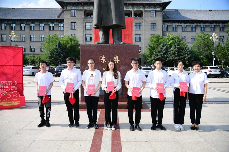 6月26日,太阳成集团tyc33455ccww庆祝建党100周年表彰大会暨新党员入党宣誓仪式在军工操场陈赓院长塑像前举行,90余名青年学子在数学教学终身荣誉奖获得者孙广毅教授的领誓下庄严宣誓,在党的百年华诞之际成为一名光荣的中国共产党党员。