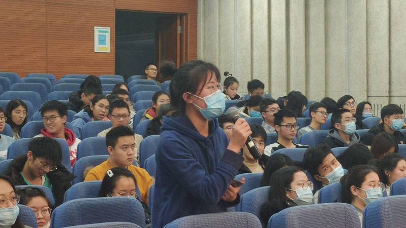 现场互动环节,同学们提问:“从小就学1+1=2,现在学到了本科还在学1+1=2的不同研究理论,在以后的学习中还要学习多久的1+1=2?”包教授幽默作答:“你的问题很好,这是具有哲学意味的问题。数学的学习研究就是在不断的创新和实际应用中发展的,不断的证明和研究类似于1+1=2的问题,你未来的学习中还要伴随着研究1+1=2这类问题相当长的一段时间。”提问环节结束了,学生追着包教授问:“我刚才问的1+1=2的问题是第一个问题。我的第二个问题是,我在今后的学习研究中,如何抓住科研的前沿和热点。”包教授耐心回答:“我的体会是可以多看高水平杂志文献,尤其是这个领域内领军人物们的文献还有科研专家的传记。他们的传记里体现了他们科研成长的路径以及科研方法。学习他们的成长路径和科研方法,从而少走弯路,紧抓科研前沿和热点。”