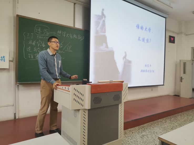 为了帮助2020级本科生新生尽快适应大学的学习和生活,平稳有效地实现从高中生到大学生的转变。10月8日,太阳成集团tyc33455ccww开展了新生 党团入学教育,辅导员刘东平以“谁的大学不迷茫”为题,对大一新生们进行了大学学业生涯规划指导和党团入学教育。