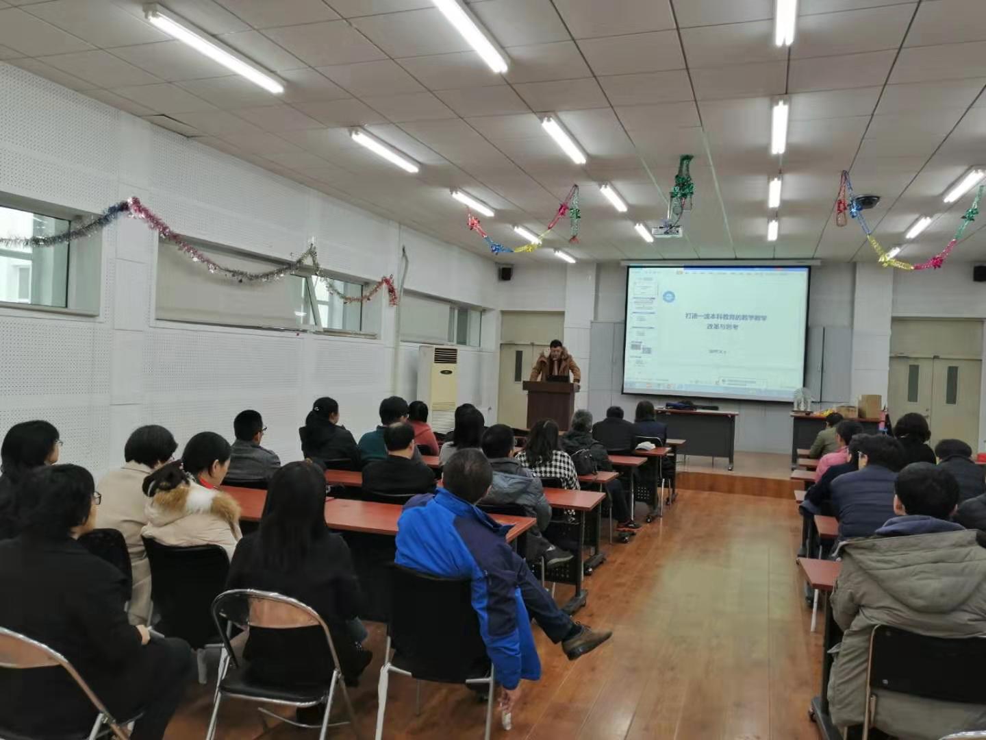 2019年11月6日下午,太阳成集团tyc33455ccww在理学楼344召开全院大会,院长沈继红做题为《打造一流本科教育的数学教学改革与思考》的重要报告。