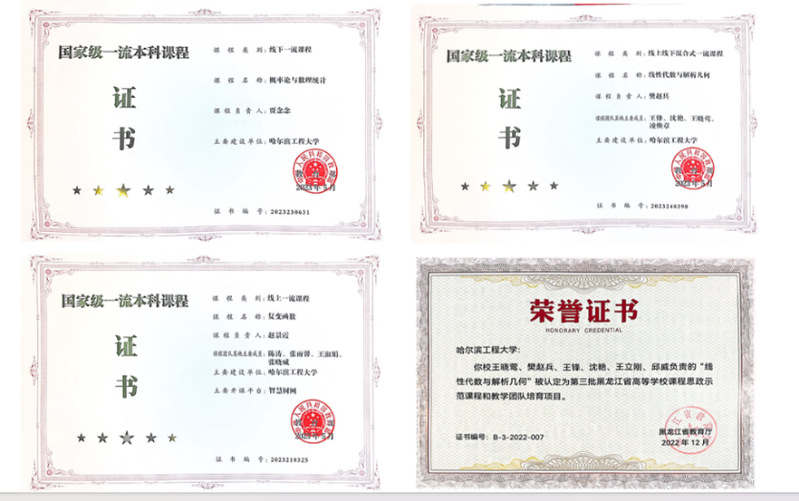 学院依托“两院一班”改革高地,对标新工科优势院校,坚持“强基固本、聚理融工”,通过中外数学教学体系对比研究、优化教学内容、重构课程体系、加大过程式考核等措施,加速推进新工科建设。《线性代数与解析几何》、《概率论与数理统计》、《复变函数》3门课程获批国家一流课程,获评黑龙江省高等学校课程思政示范课程1门,获批中国高等教育学会重点项目立项2项。贾念念教授喜获第三届全国教学创新教学大赛二等奖。
