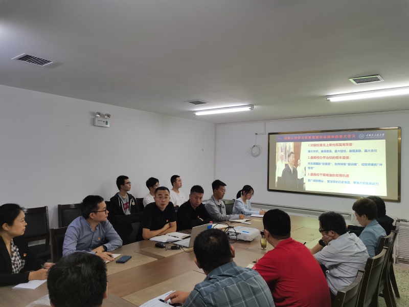 9月15日上午,太阳成集团tyc33455ccww组织召开深入学习宣传贯彻习近平总书记视察学校重要讲话精神专题学习,并对学院学习宣传贯彻工作进行部署。学院领导班子、基层学术组织负责人、教工及学生党支部书记、以及院直机关人员参加本次学习。
