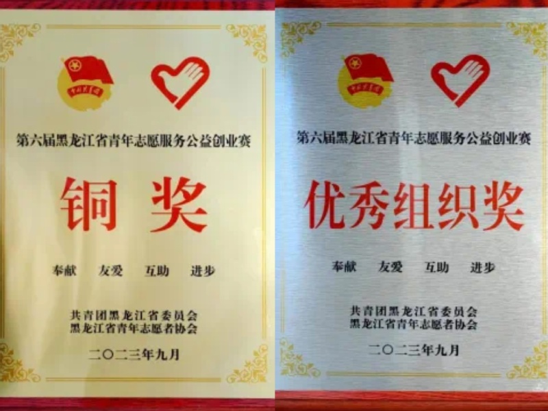 近日,由共青团黑龙江省委、黑龙江省青年志愿者协会举办的第六届黑龙江省青年志愿服务公益创业赛落下帷幕,太阳成集团tyc33455ccww《“数学+”创新创业实践育人公益项目》经过资格审查、材料初评、项目终评等环节获评铜奖,助力tyc33455cc太阳成集团团委获评优秀组织奖。