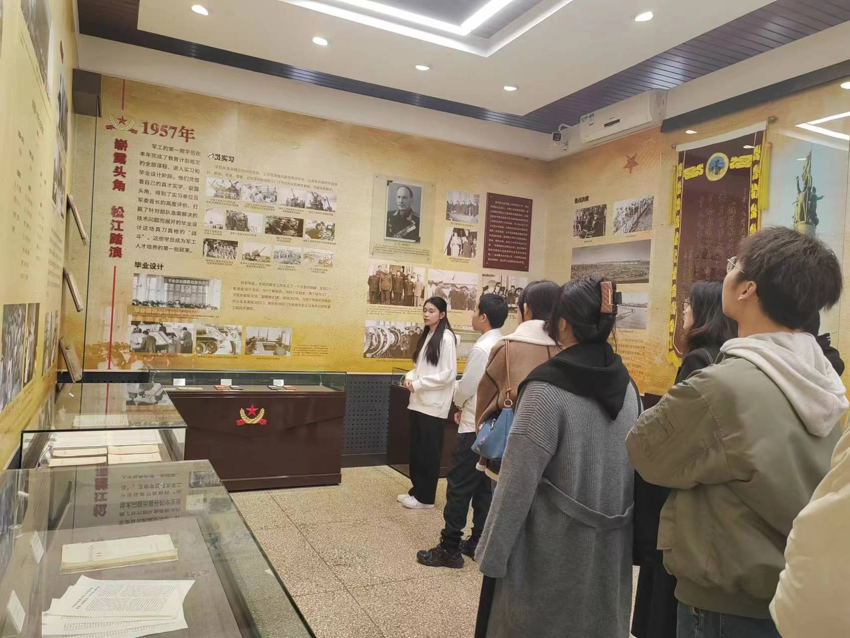 党支部成员追随习近平总书记的脚步,来到哈军工纪念馆,深入了解哈军工发展历程。作为新中国第一所军事工程院校,哈军工以先进的办学理念、高质量的办学成果,成为一代代哈军工人的精神向往。党支部书记刘鑫旺在哈军工时期产生的重要成果展板前驻足良久,并指出,“总书记强调要发扬哈军工优良传统,这就需要我们哈工程人赓续红色基因、坚守价值追求、秉持创新精神、弘扬治学传统、保持奋进姿态、拓展世界眼光。不忘初心,继续前进,持续不断为我国海军工程与技术的发展做出重要贡献。”