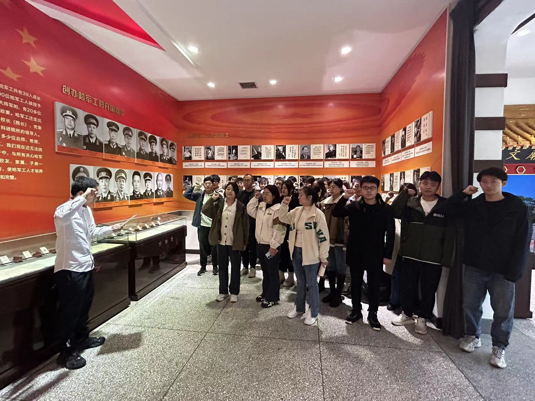 在集体参观完哈军工纪念馆后,刘鑫旺带领大家重温入党誓词,党员同志们在党旗下许下了铮铮誓言,并将以更加高昂的精神践行对党的庄严承诺。。