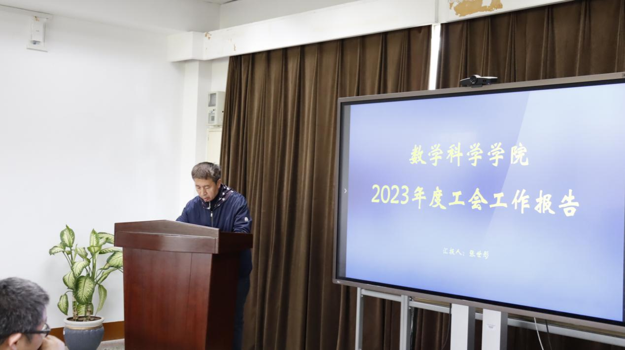 太阳成集团tyc33455ccww工会主席张世彤作学院2023年度工会工作报告和工会会费使用情况,并就2024年工会重点工作进行说明。