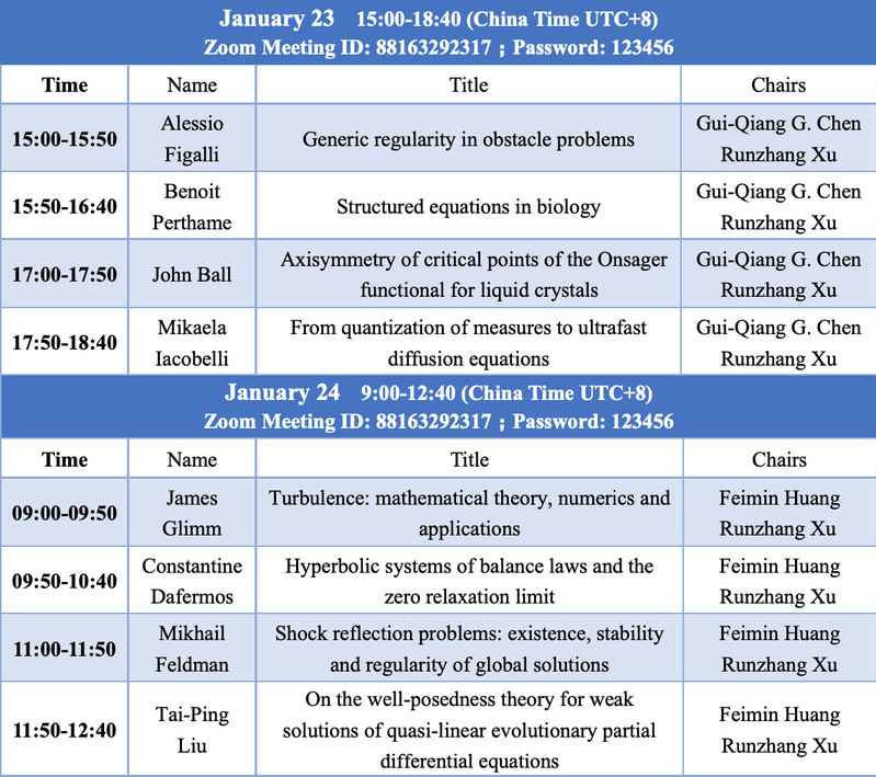 Thepre-conferencewill hold eight academic lectures from January 23-24, 2021. Please refer to the following table for the specific lecture schedule and link below for entering the meeting.