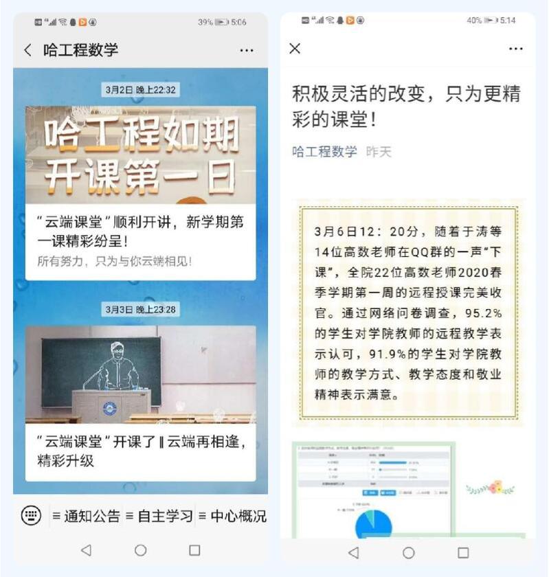 经过党支部与教研部的共同努力,截止3月6日12:00,全院22名高数教师的2020年春季学期第一周的线上教学完美收官。通过网络问卷调查,95.2%的学生对学院教师的远程教学表示认可,91.9%的学生对学院教师的教学方式、教学态度和敬业精神表示满意。这个数据是对党支部工作及教研部工作的一次检验,也是极大地的认可。