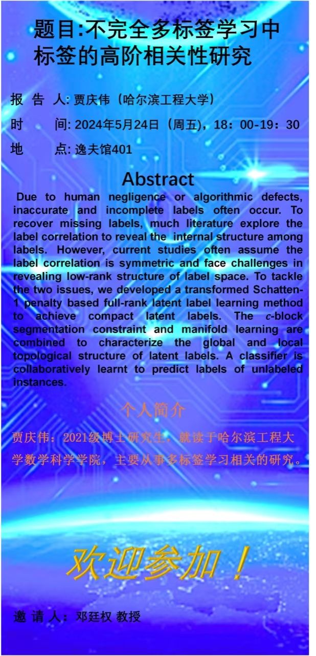 贾庆伟——不完全多标签学习中标签的高阶相关性研究