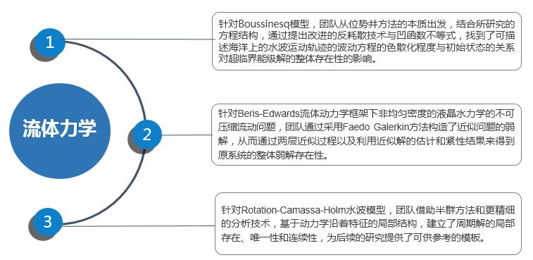 流体力学是一门研究流体运动规律的学科,它在航空、航天、机械、动力、化工、能源、环境等专业领域都有重要应用。流体力学的核心研究对象是以流体的密度、速度场、压强和温度等基本物理量为未知函数的非线性偏微分方程组。关于此类问题的研究,本研究团队与国内外课题组展开深入合作,包括美国University of Pittsburgh和美国University of Texas。