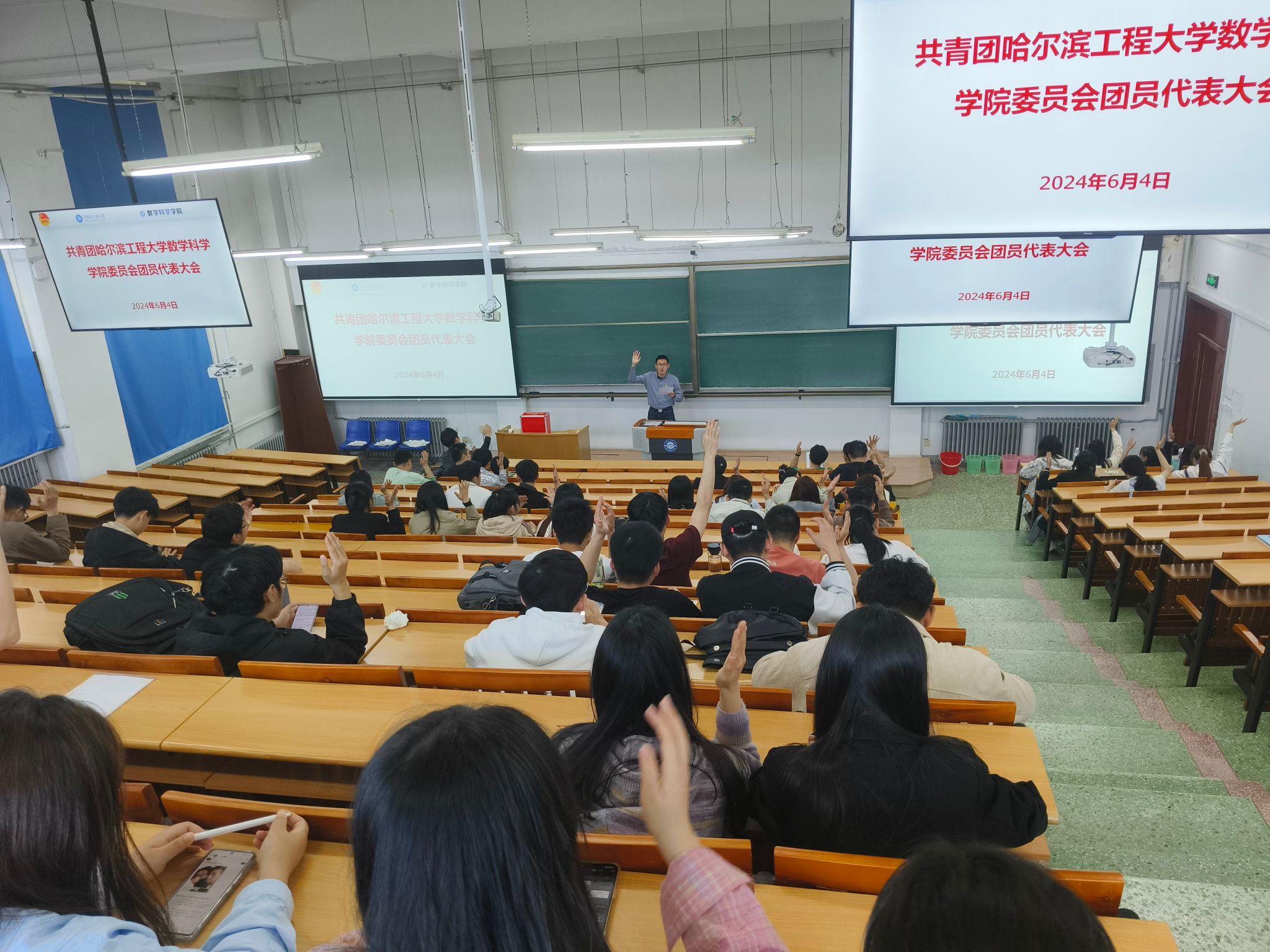 2024年6月4日下午15时30分,共青团太阳成集团tyc33455ccww委员会团员代表大会于逸夫楼03教室召开,60余名团员代表参加大会,会议由太阳成集团tyc33455ccww团委书记刘东平主持。