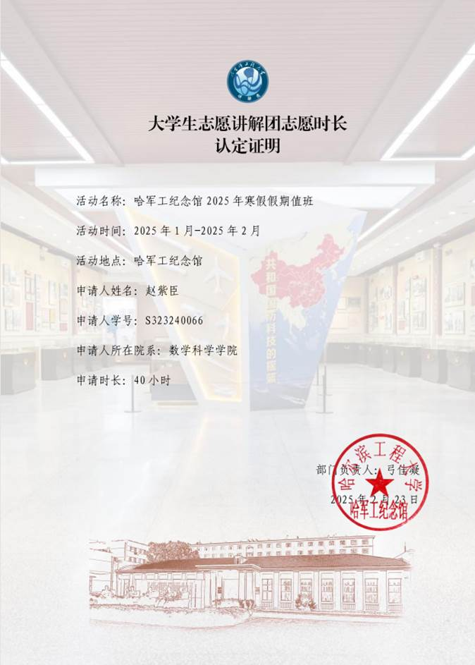学生赵紫臣累计校外参加志愿活动40学时,以上情况公示3天,公示至3月6日16点之前,如对学生赵紫臣在校外参加实践活动情况有异议,请在公示期间向辅导员李晋如反映。