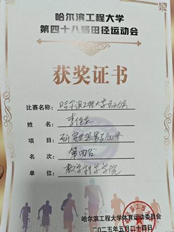 李佳益 S323240015 100米 第四名 根据荣誉加分规则,给予文体分0.5分。
