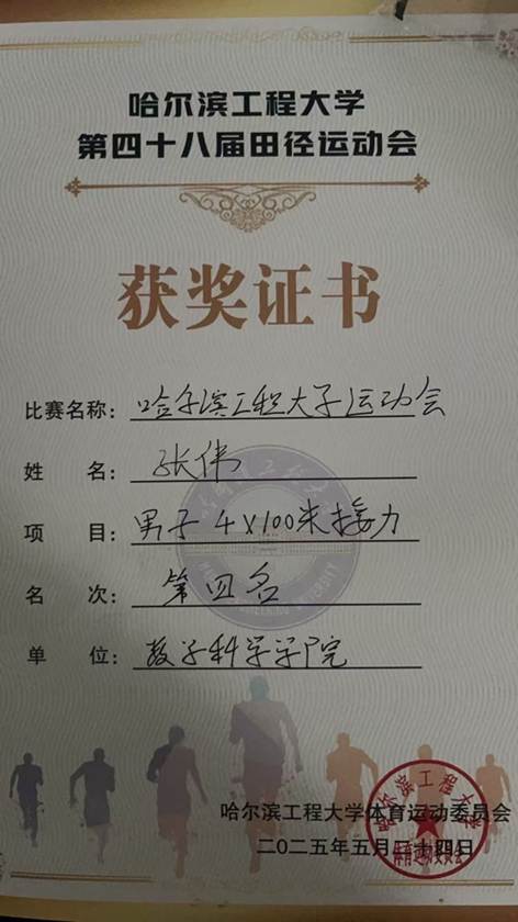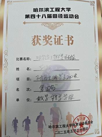 200米 第四名 根据荣誉加分规则,给予文体分0.5分。
