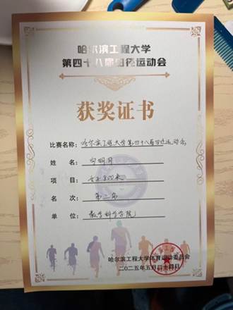 向明月 S323240042 女子800米 第二名 根据荣誉加分规则,给予文体分0.9分。