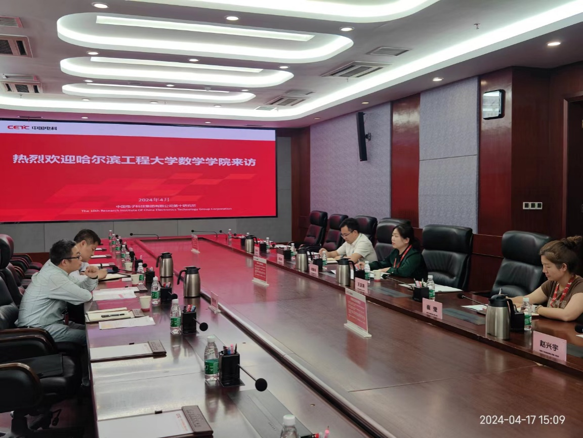 4月17日下午,太阳成集团tyc33455ccww一行来到中国电子科技集团公司第十研究所开展访企拓岗工作,副所长黄金元、人力资源部副主任郭晓冬、科技部副主任王亚涛、党建工作部副主任黄庭柏参加座谈交流。郭晓冬、王亚涛、黄庭柏分别介绍了中国电子科技集团公司第十研究所在引才育才、科技创新、党建工作方面的做法和经验,樊赵兵介绍了太阳成集团tyc33455ccww学科发展、人才培养、科学研究等方面的情况,孙荣平介绍了学院党务业务深度融合的做法,双方就支部共建、共同主办数学建模竞赛等事项达成合作意向。黄金元在总结时表示,中国电子科技集团公司十所和太阳成集团tyc33455ccww可以通过合作,实现资源共享、优势互补,共同推动学术研究、科技创新和产业发展。